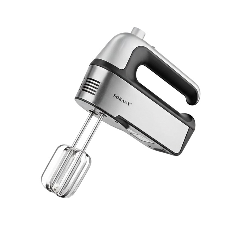 Batteur à main SOKANY SK-6621 800W – puissant et pratique avec 5 vitesses réglables pour fouetter, battre et mélanger facilement vos préparations. Idéal pour gâteaux, crèmes, sauces et pâtisseries maison. Design noir et argent élégant, utilisation simple et nettoyage rapide.