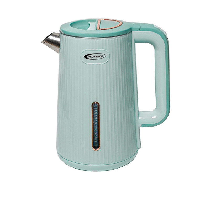 Bouilloire électrique Florence HK3731500 W, capacité 2 L, chauffe rapide (4–6 min), base inox, arrêt automatique, double paroi, indicateur niveau d’eau, couvercle à ouverture facile. Pratique, sûre et efficace pour boissons chaudes et usage quotidien.