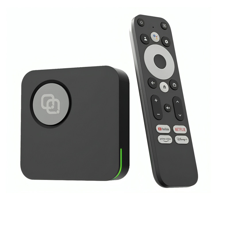 Box Android QQ Box-S100 Google TV avec 2 Go de RAM et 16 Go de stockage interne. Offre une interface Android fluide avec affichage jusqu’à 4K et connectivité Wi-Fi et Bluetooth pour une expérience multimédia simple et pratique.