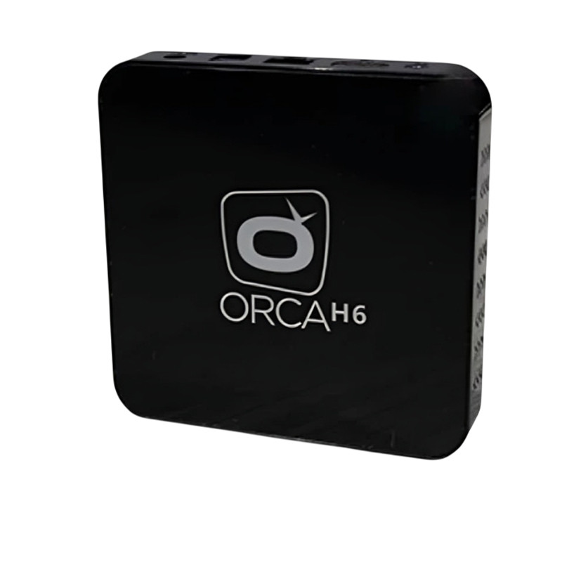 Box Android ORCA H6 avec 4 Go de RAM et 64 Go de stockage interne. Fonctionnant sous Android 10, elle offre une navigation fluide et une sortie vidéo en haute résolution pour profiter de contenus multimédias sur grand écran.