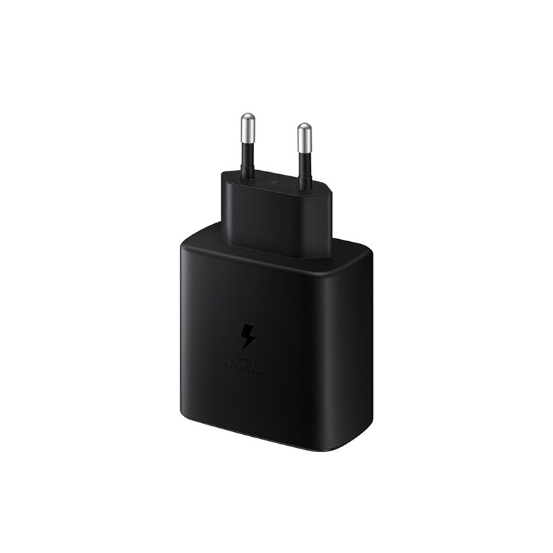 Adaptateur de charge Samsung Super Fast Charge 45W – Noir pour recharge ultra rapide de smartphones et appareils compatibles PD. Design compact et puissance élevée pour une recharge efficace.
