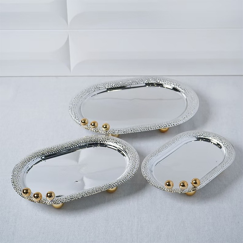 Set de 3 plateaux ovales en métal au design élégant et moderne, idéal pour servir, organiser ou décorer votre intérieur. Grâce à leurs différentes tailles et leur finition raffinée, ces plateaux apportent une touche chic à vos tables, buffets ou espaces de rangement.