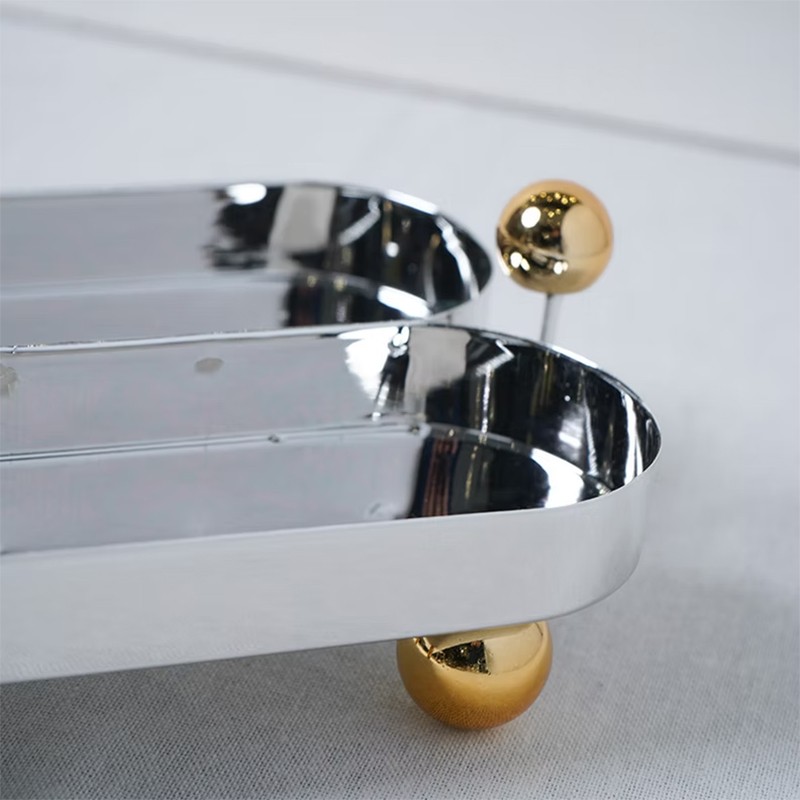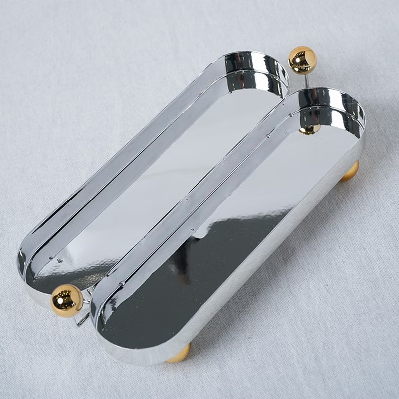 Mefred de présentation avec 2 cavités ovales en métal au design élégant et raffiné, idéal pour servir dattes, chocolats, fruits secs ou confiseries. Son style décoratif moderne apporte une touche chic à votre table lors des réceptions et moments de convivialité.