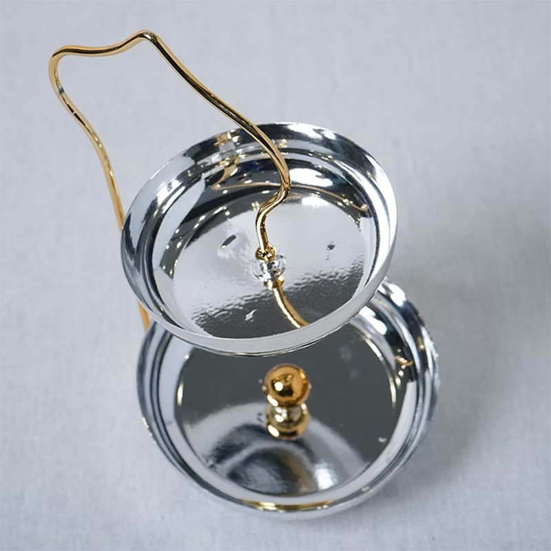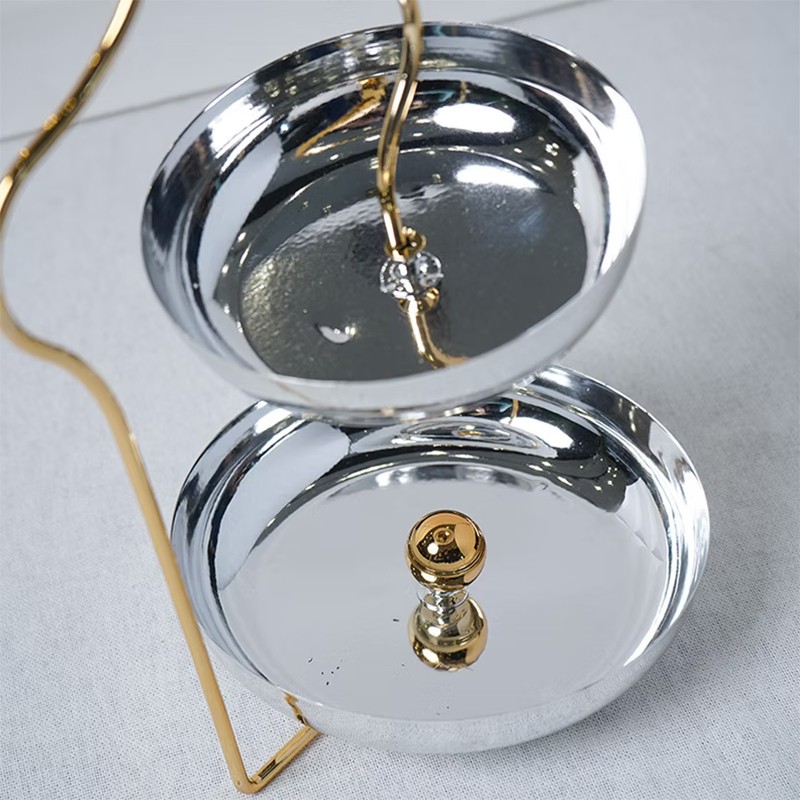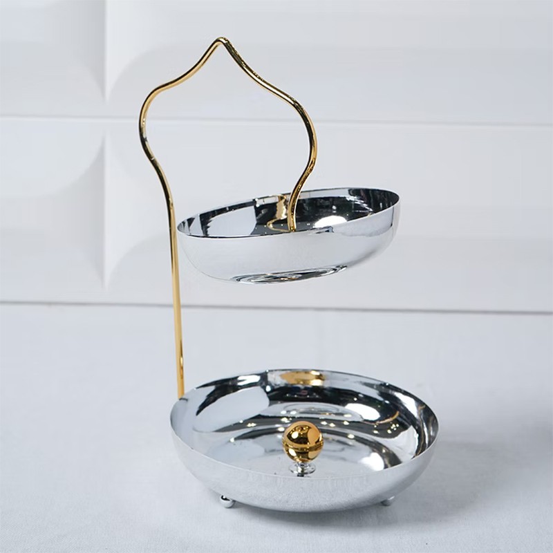 Mefred à 2 cavités avec support en métal au design élégant et raffiné, idéal pour présenter dattes, chocolats, fruits secs ou confiseries. Son support surélevé apporte une touche décorative moderne tout en facilitant le service lors des réceptions et moments de convivialité.