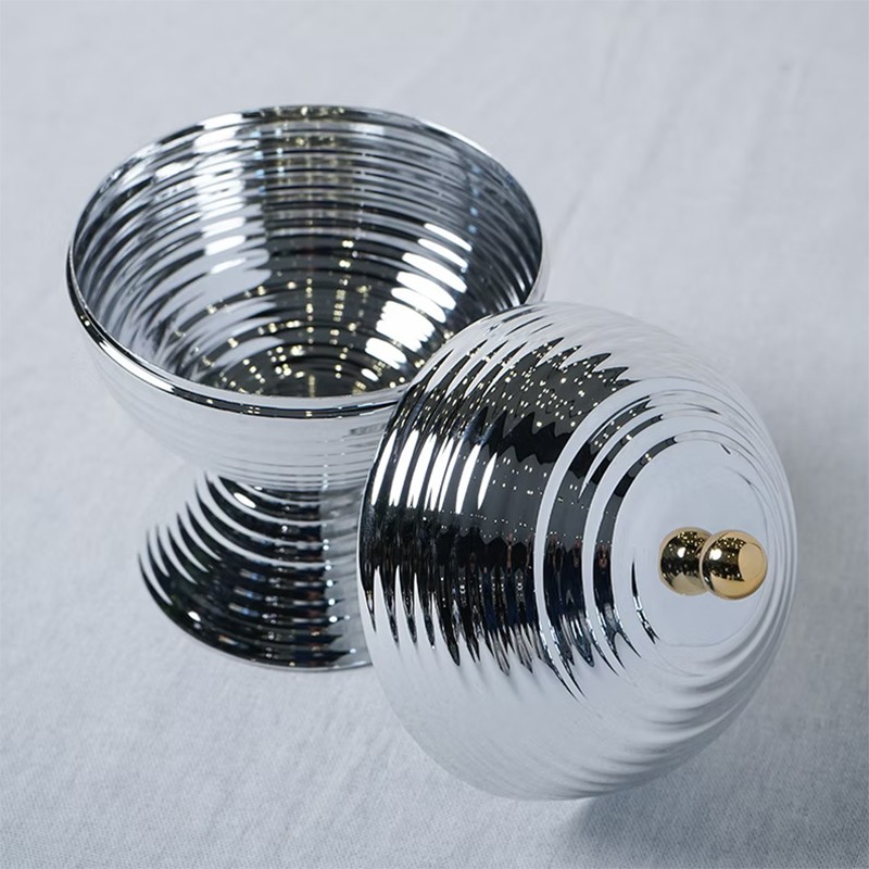 Grâce à sa structure métallique résistante et son format compact, cette bonbonnière s’intègre parfaitement sur une table, un buffet ou une console décorative. Son design intemporel convient aussi bien aux intérieurs modernes qu’aux décorations traditionnelles.