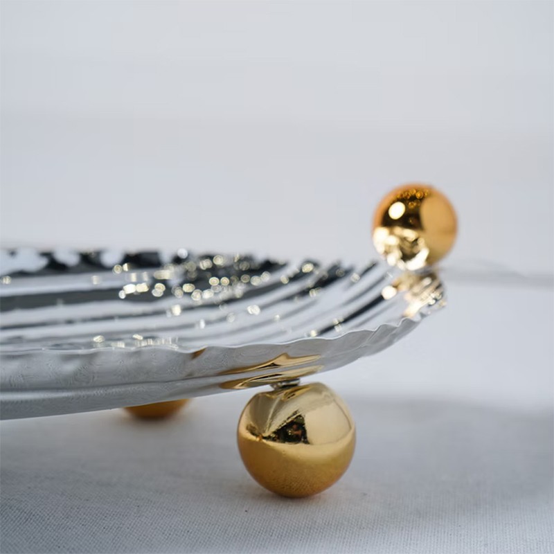 Le Khassa en métal est un accessoire pratique et décoratif conçu pour sublimer la présentation de vos mets, bonbons, dattes, chocolats ou petits objets décoratifs. Avec sa structure métallique robuste et son design raffiné, ce plateau apporte une touche d’élégance à votre table ou buffet tout en facilitant le service.