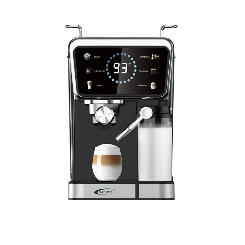 Équipée d’un double réservoir amovible (eau de 1,5 L et lait de 500 ml) et d’une interface tactile avec affichage LED, la Florence HK429 facilite l’utilisation et le contrôle de la température et des boissons. La buse vapeur intégrée permet de créer une mousse de lait onctueuse pour des cappuccinos et lattes dignes d’un barista.