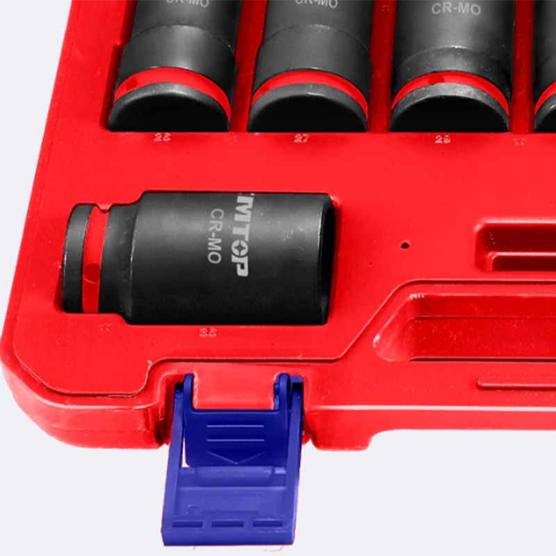 Composé de douilles de 26 à 38 mm, ce kit couvre les tailles les plus utilisées pour les applications professionnelles. Sa conception en acier chrome-molybdène (Cr-Mo) assure une résistance exceptionnelle aux chocs, à la torsion et à l’usure.
